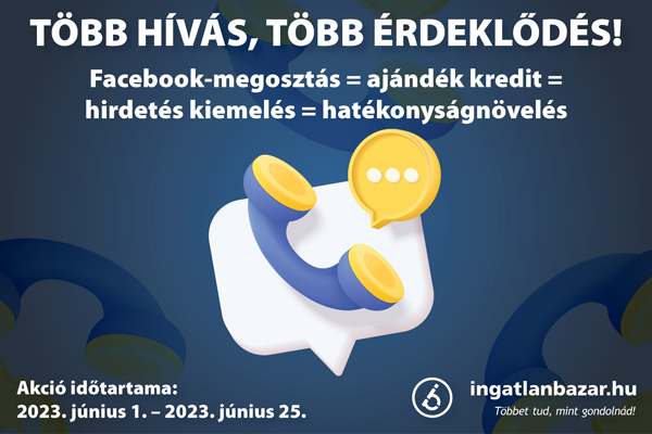 Ha a www.ingatlanbazar.hu oldalon az admin felületedre belépve kezdeményezed a hirdetéseid Facebookon történő megosztását, ingatlanonként 50 kreditet írunk jóvá havi fordulós kreditegyenlegeden az alábbi feltételekkel.
