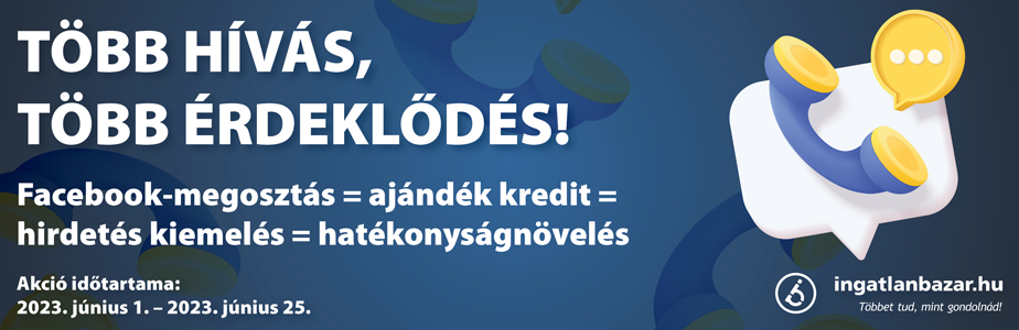 Ha szeretnéd, hogy a hirdetésed láthatóbb legyen és még több érdeklődő jelentkezzen az ingatlanaidra, használd a kiemeléseket! Így a hirdetések előre sorolva jelennek meg a listaoldalainkon, és több ingatlankeresőhöz jutsz el hatékonyabban.