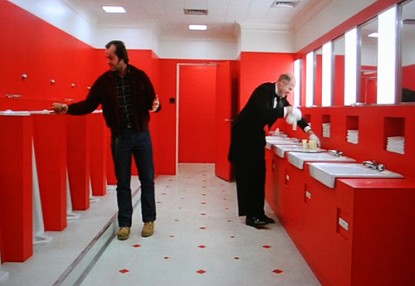 Kubrick klasszikus filmremekében feltűnik egy lenyűgöző mosdó. A megbomló elméjű Jack Nicholson egy vörös-fehér, csillogó mellékhelyiségben folytat le egy idegtépő beszélgetést a szálloda pincérével…A jelenet és a film az ember retinájába égett, ahogy az alábbi belsőépítészeti megoldások is.