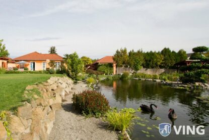 Az ingatlanról szóló hirdetés rendhagyó módon nem is a házzal, hanem az egyedülálló mesterséges tórendszer ismertetésével kezdődik, amely különleges növények, japánból beszerzett koi pontyok különböző fajtájú és méretű egyedeit rejti. Több vízimadárfajnak is otthont ad, köztük két fekete hattyúnak. Mindemellett a közel 200 négyzetméteres lakóingatlan is minden igényt kielégítő módon álmodták meg.