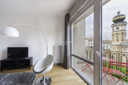 A Dohány utcában, magasemeleten érhető el a most következő, 76 nm-es ingatlan, amelynek gigantikus ülőgarnitúrája harmonizál a kellemes kiülést biztosítő terasz virágaival. A gondos kezek munkája 59,5 millió forintért vihető!