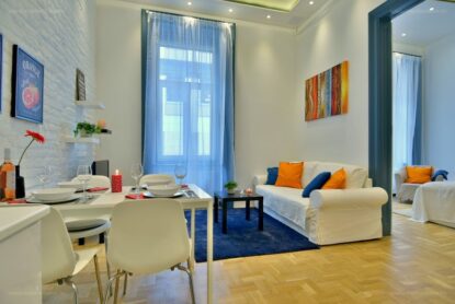 Csodás, kék és narancs színekkel játszó lakás keresi bérlőjét szeptembertől, a Dohány utcában! Ha épp lakást keres a belvárosban, vagy szereti a lakberendezési inspirációkat, esetleg Klimt rajongó, akkor ez a hirdetés önnek szól!
