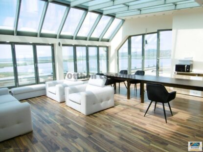Modern, elegáns, letisztult vonalak és persze pazar kilátás! A 323 nm-es ingatlan Velence egyértelmű “legje”. Az ablakok mérete és száma miatt mi akár műterem lakásnak is el tudnánk képzelni. Kérdés, hány kortárs művésznek telik ilyen csodás, luxus otthonra…?