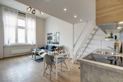 Egy szobás, modern stílusban, ügyesen felújított, galériás Airbnb lakás keresi új gazdáját. A népszerű kék-sárga enteriőr helyett ezúttal az örök kedvenc, a mindenhez passzoló fekete-fehér vonalak várják lakóikat!