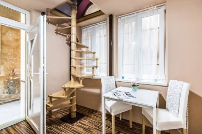 Természetesen egy fullra felújított minigarzon! A keskeny lakás klasszikus Airbnb otthonnak tűnik. De egy főnek akár hosszútávon is kényelmes lehet, főleg egy ilyen szép házban!