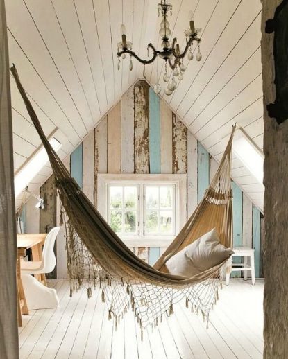 Bár sok, ránézésre kellemes látványt nyújtó megoldást találtunk a témában, mi már az ejtőernyő selyem megoldásra esküszünk. Az egészen apróra összecsomagolható ülő- és fekvőalkalmatosság bármikor elpakolható vagy bevethető. Csak két luk a falon és már kész is a vendégágy! Inspriáló terek jönnek!