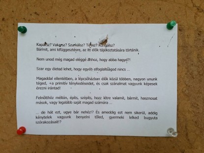 Ezúttal egyetlen nyomtatott üzenettel készültünk, a helyesírás is nagyjából rendben van. A tartalom azonban elgondolkodtató. Ágnesnek sok sikert kívánunk!