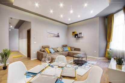 Az Almássy tér egyre inkább megújuló része a fővárosnak. A régi polgári lakásokat felváltják a felújított, a mai kor igényeihez alakított, de a hagyományos vonalat követő design otthonok. A most következő lakás minden ízében finom. 15 fotó a bizonyítékunk!