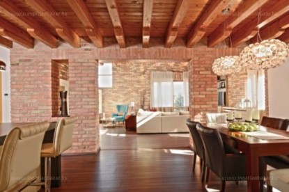 365 nm, 4+1 félszoba. Mindezt 110 millióért kínálják Szentendre kistérségben. A gerendaszerkezet és a téglaburkolat szemetgyönyörködtetően mutat a hatalmas házban.
