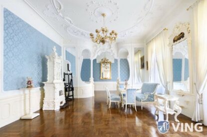 A fővárosi Belgrád rakparton kínált, csodás luxus lakás két hasonló, mégis eltérő dizájnnal rendelkező részből áll. Az elegáns vonalak az egyik részben kék és arany, míg a másikban fekete és arany színben pompáznak. Persze a fehér szín így is a domináns, a kor divatja szerint. Lessen be velünk egy, a helyi ingatlanpiacon kínált ritkaság elegáns…