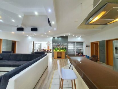 A Sében kínált, tágas, elegáns otthon beltéri medencével és akváriummal is fel van szerelve. Utóbbi ugyan jó eséllyel nem képezi az ajánlat tárgyát, a “vizes” hangulatot kellőképpen megalapozza. Lubickoljon velünk be egy 169 milliós, eladó ház albumában!