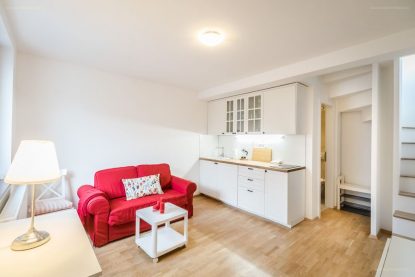 Sok fehér és egy leheletnyi málna-piros: egy belső kétszintes lakás a Palotanegyedből