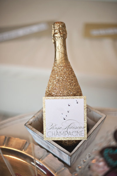1. Pezsgő, kicsit másképp. Arany csillámfestékkel még a leghétköznapibb palack is ragyog! (Persze nem baj, ha eleve jó pezsgőt veszünk…)
