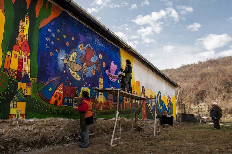 A képek tanúsága szerint a helybéliek is kivehették részüket a munkából, így azon túl, hogy a szürke, kopottas falak ragyogó, új életre keltek, nyilván olyan kötődést váltott ki belőlük, amely során fokozottan vigyáznak majd közös értékeikre.