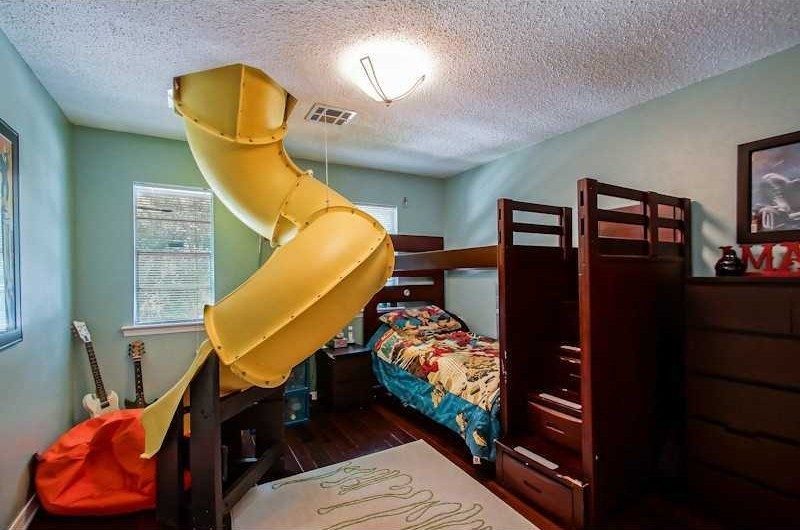 Bár nyilván jobb móka, ha belső kétszintes otthonról van szó, egyik-másik darabot akár egy nagyobb belmagasságú polgári lakásban is el tudjuk képzelni. Az biztos, ezekben a házakban előbb-utóbb a szülők is rászoktak a gyorsabb közlekedésre…