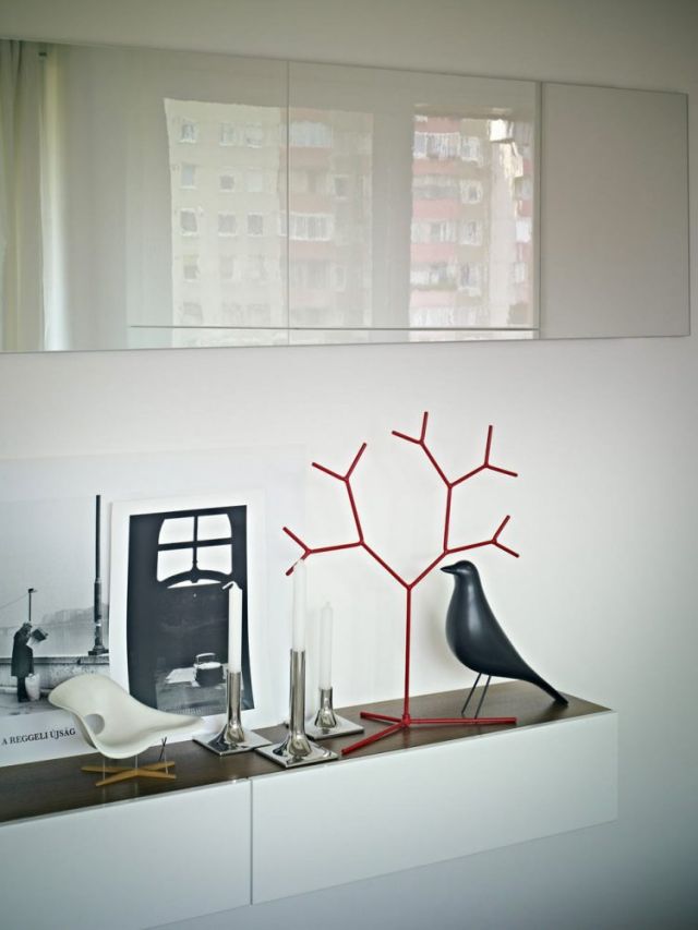 Az alábbi panellakás esetében a megrendelők speciális kérése volt, hogy a fehér szín domináljon az enteriőrben. Mindezt pirossal szerették volna kontrasztossá tenni, melyet végül a tervezőcsapt javaslatára az amerikai dió meleg barnája váltott fel.