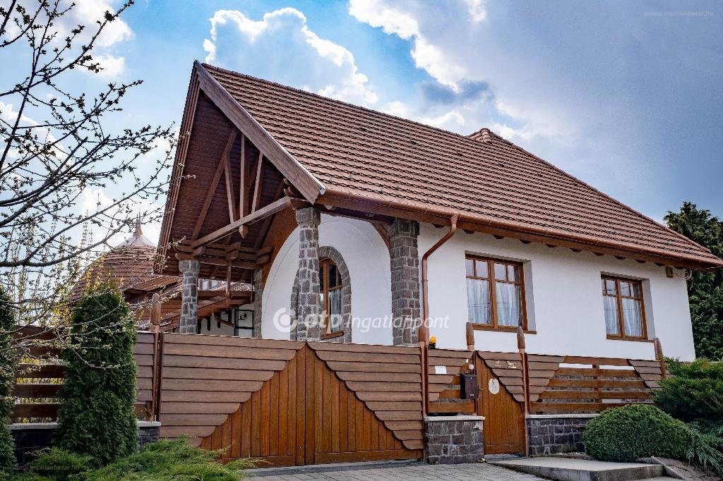 “Heves megye, Mátrai zsákfaluban Bodony településen, 360m2-es családi ház eladó. Az ingatlan Makovecz Imre Kossuth és Ybl díjas építész tervei alapján készült, kizárólag hazai anyagok felhasználásával és a térségben élő vállalkozók kivitelezésében. A lakóház két szintes, nappali-étkező, konyha, három hálószoba, vendégrész, könyvtár, galéria, három fürdő, háztartási- kiszolgáló helyiségek, pince található benne. Az udvaron az épületegyüttesekhez illő garázs- nyárikonyha, valamint kazánház és többállásos gépkocsitároló került megépítésre. A Makovecz-ingatlan gépészete magas minőségű, takarékos, környezetkímélő, kihasználja a természet erejét. A telek 2324 m2, csendes utcában található, a hátsó kertből csodálatos panoráma nyílik a kékestetőre, a mátra hegyeire, dombjaira. Amennyiben felkeltette érdeklődését ez az egyedülálló, élhető, kiváló minőségű ingatlan, kérem hívjon és egy előre egyeztetett időpontban saját szemével győződhet meg e páratlan építészeti remekműről.[…]”