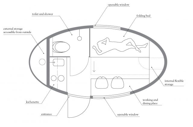 A lengyel mini csoda után ezúttal jöjjenek a szlovákok, hiába mégsicsak fontos a V4-ek testvérisége. A Nice Architects névre hallgató építész iroda Ecocapsule terve nem csak dizájnos, de a szerencsére végre lassan közhelyszámba menő környezettudatos jelzőnek is megfelel. Bár az alapterület elég kicsi, a szlovák tervezők szerint két felnőtt számára elegendőnek kell lennie.