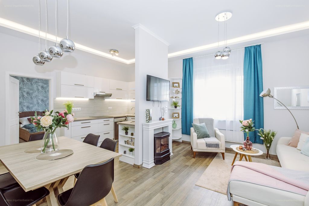 Egészen húsvéti a most következő, finom, vidám tavaszi színekkel berendezett, 100 nm-es győri lakás. Persze az arculat az új tulajdonos keze alatt még változhat. Mi mindenesetre így, ‘tokkal-vonóval” együtt szerettünk bele a tágas szépségbe.