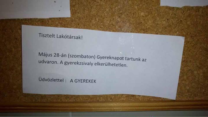 Sosem elég: LÉPCSŐHÁZI ÜZENETEK 38761. RÉSZ 2016. június. 6. 10 years Humor ingatlanbazar.hu Címkék: ingatlan, ingatlanbazár.hu, lakóközösség, lépcsőház, társasház, üzenet, vicc Nincs is jobb, mint egy hétfő reggeli röhögés. Barátságos, aránylag trágárság mentes válogatás jön. Tökéletes. Sose kezdj egy fáradt édesanyával! Logika ötös. Ez kedves. Ezt kívánják a lakók! Óóó… A kiegészítések helyénvalónak tűnnek. Jocit mondjuk nem ismerjük. De legalább feltakarított maga után a tolvaj. Zsivaly! Gyönyörű! Hiába, mindenhova beférkőzik a politika… Izgalmas VIII. kerületi eladó lakások. Hát persze! A Corvin sétánynál. Post navigation Előző bejegyzés A hét háza: kifinomult, ízléses szépség Siófok közepénKövetkező bejegyzés A hét háza: skót stílusú kastély Budapesten, hírneves építésztől