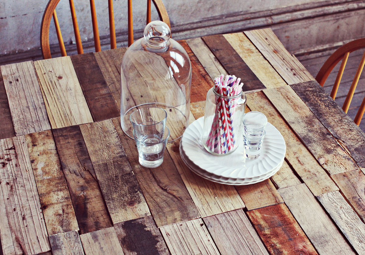 Egy gyönyörű asztal régi lécekből. Harisnyával ne üljünk rá. De amúgy se üljünk az asztalon!kony3