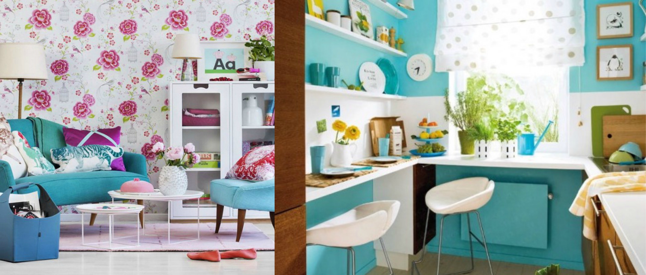Hogy ne zavarodjunk meg, elég kisebb felületeket élénkíteni. Egy puha szőnyeggel, drapériával pedig érdemes lágyítani a hersegő hatást.
