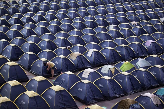 Feb. 7, 2012 – Sao Paulo, Brazil – General view of tents for people during the 5th Campus Party Brazil at the Convention Center of Anhembi. Campus Party (CP) is an annual week-long, 24 hour a day technology festival and LAN Party. Thousands of hackers, developers, gamers and geeks equipped with laptops camp out in tents on-site for the conference and hackathon. (Credit Image: © Sebastiao Moreira/EFE/ZUMA24.com)