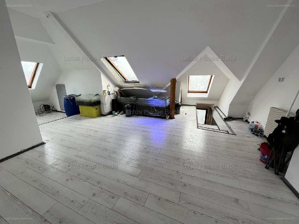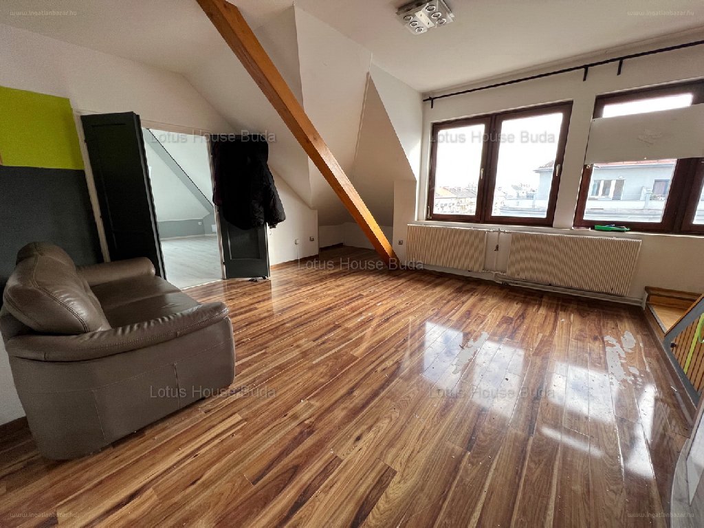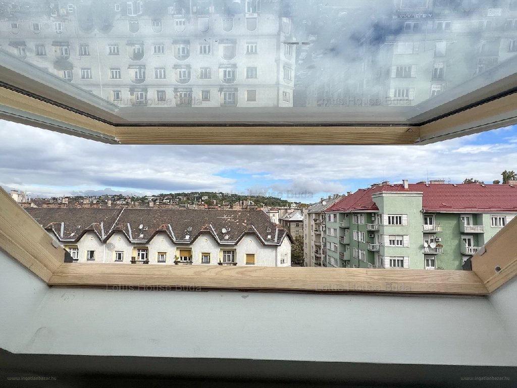 A 101 nm-es, tetőtéri, belső kétszintes, különleges adottságú, nappali + 3 szobás, dupla komfortos lakás az épület 6., legfelső emeletén helyezkedik el. Az ingatlan lifttel megközelíthető, bejárata a zárt lépcsőházból nyílik, és csupán egyetlen szomszédja van. A lakás felett húzódik egy kb. 8nm-es padlás, mely szintén a lakáshoz tartozik, és kizárólag onnan közelíthető meg. A lakásban húzódó gerendák egyedi atmoszférát teremtenek. Központi elhelyezkedése ellenére egyáltalán nem zajos ingatlan, emellett rendkívül világos, napos, minden irányban tetőket látni, párizsias a hangulat. Az alsó szint 58 nm-es, itt található egy világos nappali, egy Gellérthegyre, Citadellára panorámás, tágas hálószoba, egy konyhabútorral, gépekkel felszerelt konyha, valamint egy kádas fürdőszoba és egy külön wc melyek lichthofra szellőznek. A nappali ablakokon kívül a nyílászárók (a tetőablak is) cserélve lettek. Ezen kívül a tavalyi évben felújították a hálószobát, konyhát, előszobát, fürdőszobát, és wc-t. (új burkolatok, szaniterek, új konyhabútor, új gépekkel, indukciós főzőlap, beépített sütő, víztisztító, szódagép) A nappaliból jutunk fel a felső szintre, ahol egy tágas térbe érkezünk, mely egy tinédzser számára kiválóan alkalmas külön lakórész lehet. Innen nyílik egy kis félszoba, valamint egy zuhanyzós fürdőszoba wc-vel. A felső szintről is fantasztikus kilátás nyílik a környékre. Itt a tetőablakok cserére szorulnak. A lakásban 3 helyen is találhatók rejtett, tetősík alatti tárolóhelyek. A lakás tehermentes, 1/1 tulajdon, október közepétől birtokba vehető.