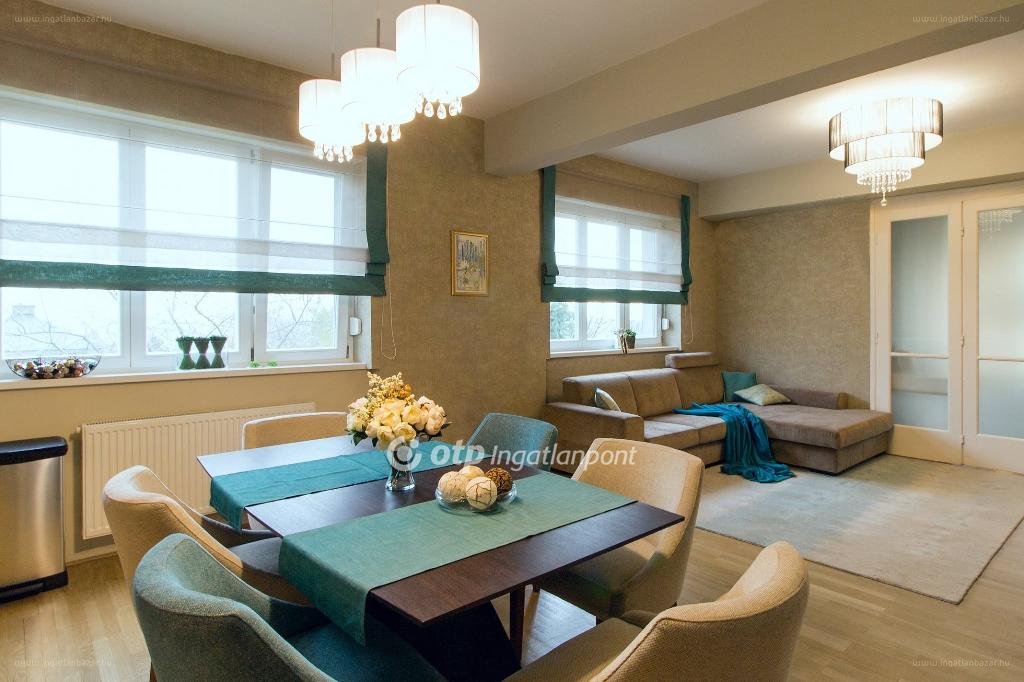 „Budapest II. kerületében a Vérhalomtér közelében, Rózsadombon eadó egy rendkívü napfényes, világos, teljeskörűen felújított amerikai konyhás, 3 szobás, panorámás ingatlan. A 9 lakásos társasház 1939-ben épült, a vezetékek, burkolatok, nyílászárók cserélve lettek, és a ház szigetelve lett a közelmúltban. Ennek köszönhetően a rezsi nagyon alacsony. Belsőépítész segítségével átépített, első emeleti lakás. Rendkívül igényesen berendezett, gépesített, légkondival és redőnyökkel felszerelt otthon. A Rózsadombon lévő ingatlanhoz tartozik egy csodálatos, intim terasz, amely a szomszédos kertek zöldje felett a városi panorámát tárja elénk. Valamint egy 8 nm-es, bepolcozott tároló. Ideális választás családok, párok számára. A közelben iskola, óvoda, játszótér, számos bevásárlási és kirándulási lehetőség várja a Rózsadombon!”