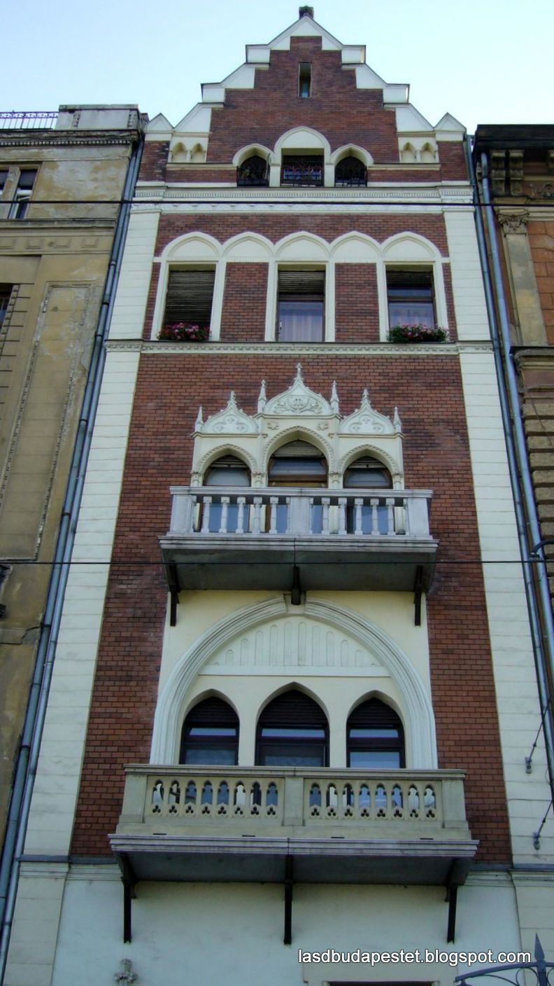 Az 1890-es évek végén épült neogótikus homlokzatú lakóház Mandl Manónak és Árminnak köszönheti végső alakját. De hogy miért lett ilyen keskeny? Hogy bizony Pestről fotózva gy egész háztömb beleférjen a képbe. Hiába, mindent a turizmusért!