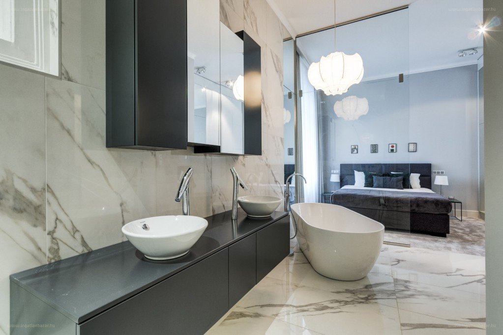 Hatalmas, napfényes nappali-amerikai konyhával, kellemes méretű, különleges elrendezésű hálószobával – melyhez egy üvegfallal elválasztott fürdőszoba is tartozik -, igazán pazar gardrobe szekrénnyel – ami minden Nő álma –, vendég/dolgozó szobával, valamint vendég wc és fürdő, illetve háztartási helyiséggel büszkélkedhet a lakás. […] Az elbűvölő és szemet gyönyörködtető szökőkutas Kristóf téren találjuk az 1912-ben szecessziós stílusban épült, ötemeletes egykori Kutnewszky üzlet- és bérházat – Kristóf tér 6. -, melyet Kőrössy Albert Kálmán Kiss Gézával közösen tervezett. […]”