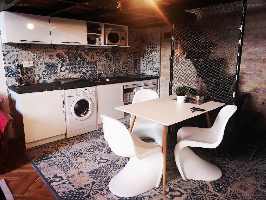 “Eladó Szeged belvárosában 5 külön bejáratú apartman, egy összesen 206 négyzetméteres ingatlan (a legkisebb apartman 32 m2 a legnagyobb 48,5 m2). A lakásokhoz egy 15 nm-es függőfolyosó is tartozik. Az ingatlan összes nettó alapterülete 163 m2. A lakások galériázottak, az összes alapterületük 43 m2. A tervező ügyelt arra, hogy a lakások kialakítása, hangulata, bútorzata különleges, néha meghökkentő megoldásokkal igazán egyedivé varázsolja az ott lakók életterét. Mindegyik lakás bútorozott, rendelkezik klímával, smart tv-vel, internettel, felszerelt konyhával, mikróval, hűtőszekrénnyel.