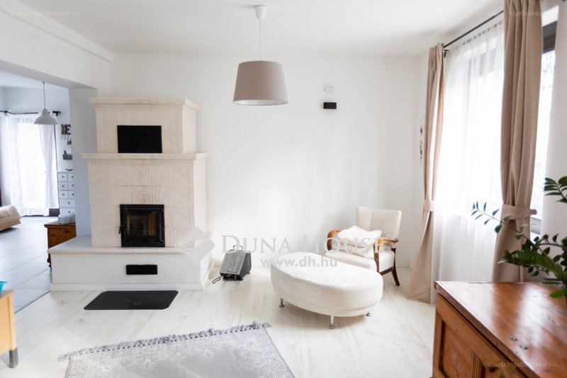 A ház lelke a földszinten elhelyezkedő, és egymásba nyíló étkezővel ellátott konyha és nappali. A világos és napfényes nappaliban a gyönyörű cserépkályha biztosítja a bensőséges, meleg otthon érzését. A konyhában a fehéret csak az egyedileg, méretre gyártott és konyhaszigettel rendelkező konyhabútor fekete fogantyúi és a fekete lámpatestek törik meg, és teszik kontrasztossá. Itt korszerű konyhagépek, illetve indukciós főzőlap került beépítésre.