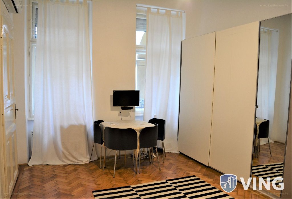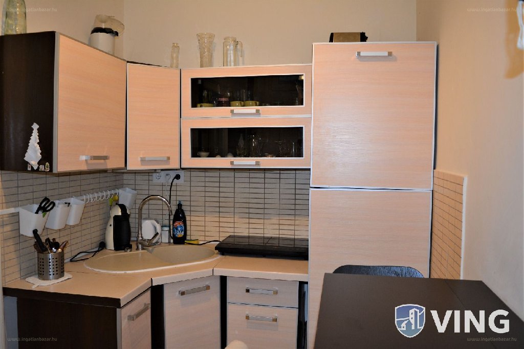 A 3 emeletes ház 1. emeletén található, nagy belmagasságú, 28 nm-s garzon felújítása néhány éve történt meg. A lakásba lépve egy kis előtér és konyha vár bennünket, innen tudunk továbbmenni a parkettás szobába, ahol az alvórész a galérián lett kialakítva. A szobából nyílik a zuhanyzós fürdőszoba és mellékhelyiség.