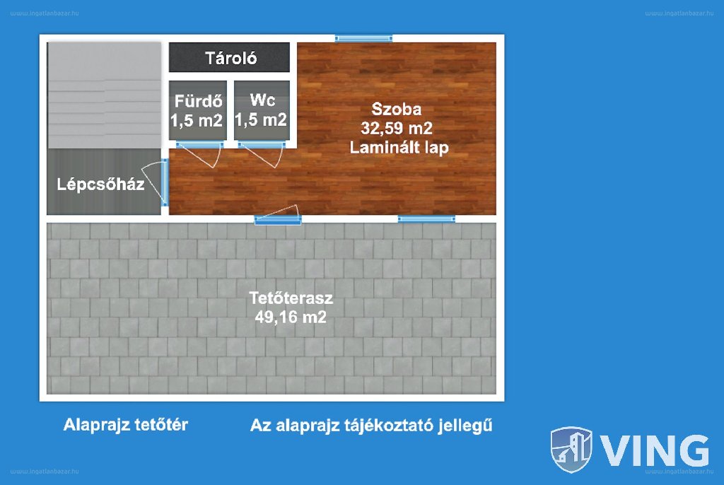 A lakás és a fenti hatalmas tetőterasz együttesen egy igazán szerethető egységet képez, amely kiváló lakóhely lehet, akár 3-4 tagú család számára is.
