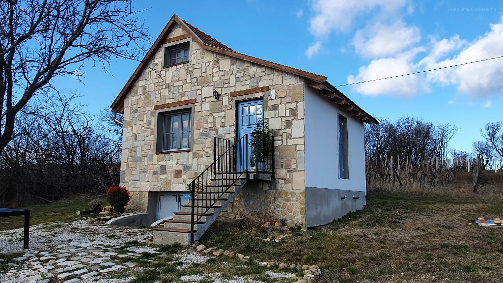 Az enyhe lejtős telek hosszan a falu felé nyúlik. Amely négy sor szőlőjén az elektromos kerítés hiányában a szüretelésről a helyi vadállatok gondoskodnak. A Szentbékkálán álló ház körüli füves telekrész úgy lett kialakítva, hogy a gondozása sok munkát és időt nem igényel. A háborítatlan és csendes hely ideális nyaralónak. Ahol a leendő tulajdonosa távol a nyüzsgéstől, emberektől a civilizáció vívmányairól nem lemondva pihenhet meg s töltheti szabadidejét. […]”
