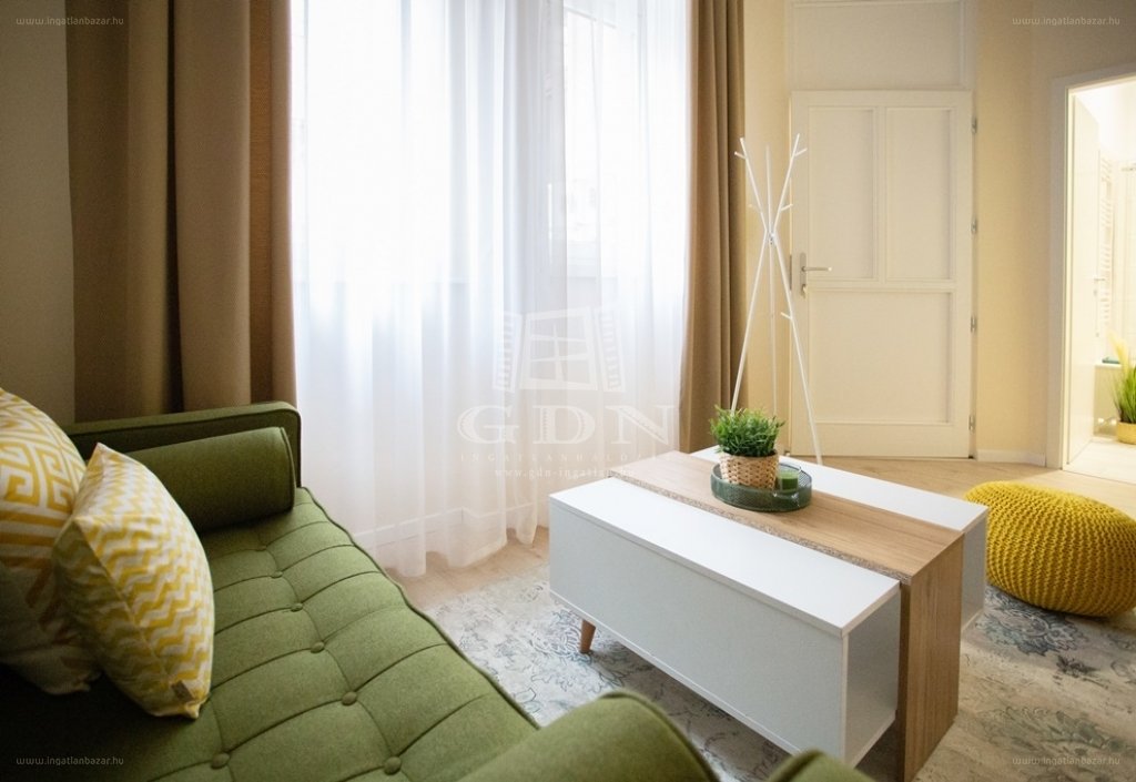 „Eladó a Horváth Mihály tér szomszédságában, jó állapotú liftes társasházban 25 m2-es felújított, belső építész által berendezett, csendes és világos stúdiólakás. Az ingatlan jól karbantartott öt emeletes liftes társasház negyedik emeletén helyezkedik el. A stúdiólakás minőségien felújított és ízlésesen berendezett. Vadonatúj konyhabútor, beépített magas minőségű, BEKO és GORENJE konyhagépekkel (légkeveréses sütő, elektromos főzőlap, páraelszívó, beépített hűtő, mosógép áll az új tulajdonos rendelkezésére. Továbbá teljeskörűen megújult fürdőszoba, teljesen új fűtésrendszer (elektromos, illetve split klímás rendszer), minőségi laminált padló, biztonsági ajtó és új műanyag nyílászárók találhatóak a lakásban.