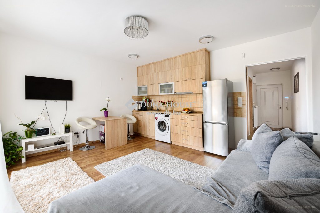 „AMERIKAI KONYHÁS NAPPALI+ HÁLÓS ERKÉLYES LAKÁS GARÁZZSAL! XIII.Angyalföldön, a Jász utca-Zsinór utca kereszteződésénél eladó 2018-as építésű , 31 lakásos liftes társasházban , 38 m2, amerikai konyhás nappali+hálós , belső kertre néző, első emeleti csendes, ERKÉLYES lakás. Az épület kiváló minőségben készült, megbízható, erős referenciákkal rendelkező beruházóval. A lakásra az igényes kivitelezés, letisztult stílus és a sok napfény jellemző. Az amerikai konyhás nappali csendes belső,kertre néz, délnyugati tájolású. A konyha teljes körűen gépesített. Bukó-nyíló 2 rétegű hő,és hangszigetelt nyílászárók redőnnyel is fel vannak szerelve. A helyiségek méretei: amerikai konyhás nappali 19,01, szoba 7,91 m2, fürdő WC 3,98 m2, előszoba 6,70 m2, erkély 2 m2. Az erkélyes lakáshoz kötelezően megvásárolandó külön helyrajzi számon lévő , 14 m2 teremgarázshely is,melynek ára 4,5 MFt.”