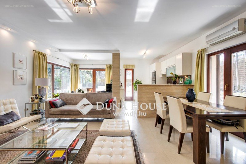 Az ingatlan minden adottságában a luxuselvárásokat megtestesítve került kialakításra. Ennek megfelelően a két szint a társasági és hétköznapi élettérbe enged bepillantást, míg az alsó szinten lévő, egy légterű, apró belsőépítészeti trükkökkel felosztott különálló helyiségek praktikusan és szeparáltan megtalálhatóak.