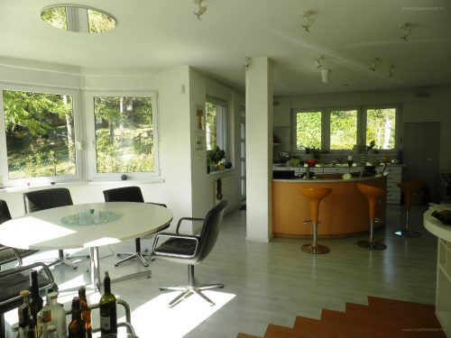 Eladó egy többgenerációs, újmodern családi ház Ürömhegyen. Üvegtégla, krómacél kandalló és a már említett lépcső. Az 540 nm-es ház megjelent a SZÉP HÁZAK egyik számában is. Irányára 300.000.000 Ft. Önnek tetszik?