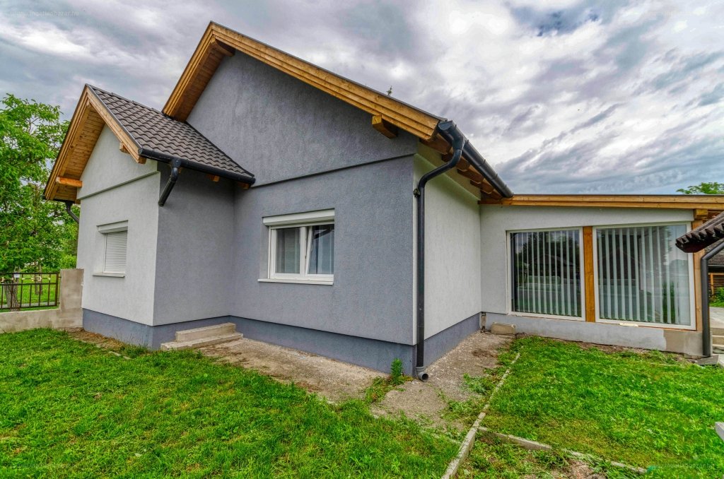 A családi ház 84 nm alapterületű, 2 tágas szoba, világos nappali, konyha-étkező, vizesblokk és kamra, közlekedő találunk itt.