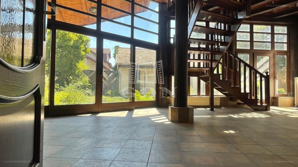 “Minden igényt kielégítő épület Budapesten belül: elegáns kert, klimatizált helyiségek, kombinált szauna és hatalmas úszómedence egy helyen. Minden szobához külön fürdőszoba tartozik. Kivételes adottságokat kínáló ingatlan, nagycsaládosoknak, illetve több generáció együtt vagy egymás mellett élésének lehetőségével. Zavartalan környezetben, mégis központi elhelyezkedéssel bíró, nettó 520 nm- es lakóingatlan, mely alapját a 903 nm-es telken elhelyezett két épület adta. Az átépítés 2001-2002-ben történt, amely során stílusos, Makovecz terveken alapuló tetőszerkezetet kapott az ingatlan, mely átöleli a két, eddig különálló épületet, így közös egységet alkotva.