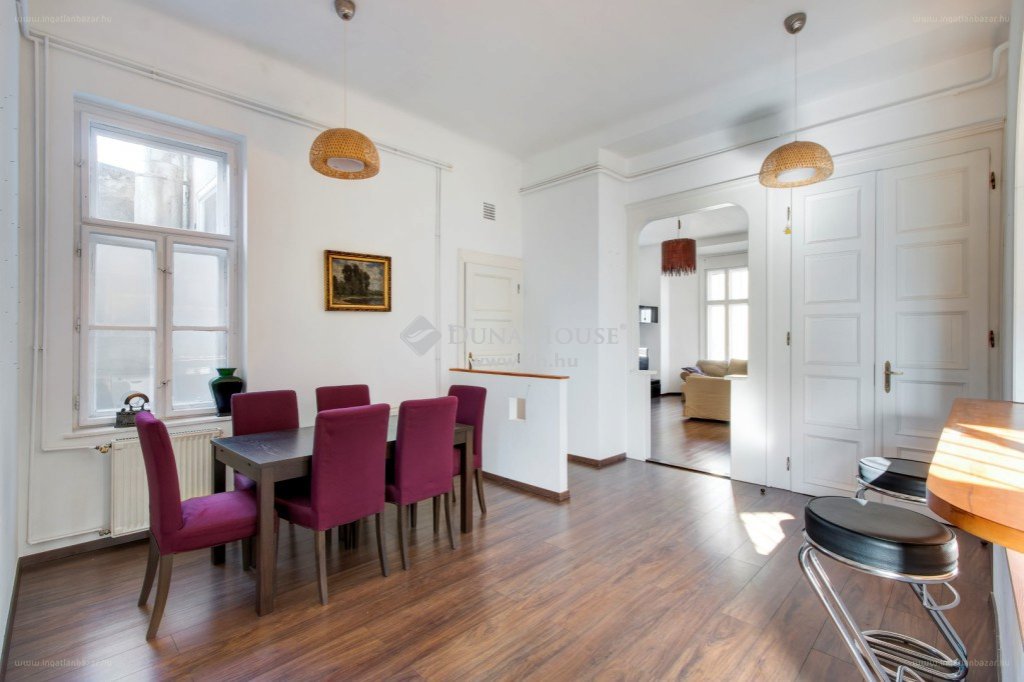 A IX. kerületi, eladásra szánt ingatlan kiváló példa arra, hogyan működhet jól egy 113 nm-es lakás. A jó eséllyel korábban több, kisebb helyiségből álló ingatlanban mára árad a fény. Inspirálódjon, vagy ha van rá 79 milliója, akár vegye meg a most következő szépséget!