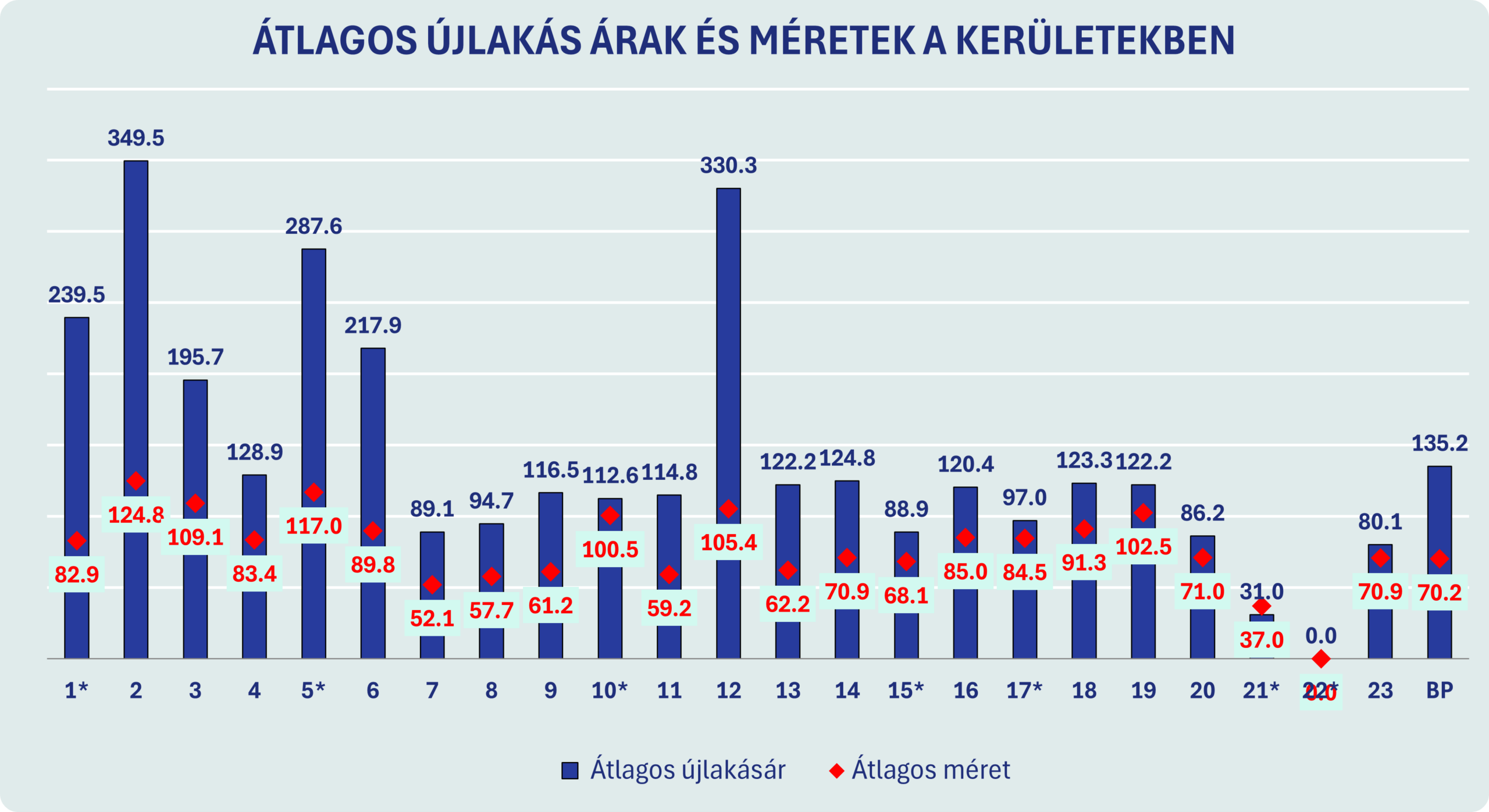 A kerületi adatok alapján világosan kirajzolódik, hogy a legdrágább budapesti városrészekben nem a kis alapterületű lakások dominálnak. Épp ellenkezőleg: ezekben a kerületekben az átlagos új lakásméret jóval meghaladja a budapesti átlagot, amely jelenleg nagyjából 70 négyzetméter.