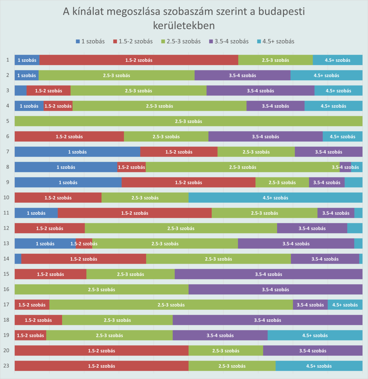 Érdekes kettősség, hogy a legnagyobb lakások aránya két, egymástól élesen eltérő szegmensben a legmagasabb: a drága budai városrészekben, valamint a jóval olcsóbb dél-pesti külvárosokban. Két külön világ, két külön célcsoport – egy városon belül.