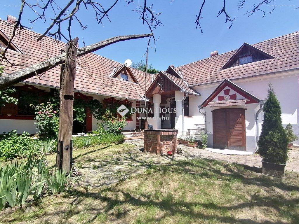 Az ingatlan egy igazi oázis, hiszen nincsenek szomszédai, abszolút csendes, ősfás kertje megnyugtató. A telek mérete 3300m2, melyen az épület alapterülete 170m2 + a beépített tetőtér. Elrendezését tekintve az alsó szint központi része a konyha-étkező-nappali. Egy autentikus, önmagában is kincset érő kemence ékesíti a konyhát, melynek másik oldala egy nyitott tűzterű kandalló. Ezt a házrészt abszolút befűti, de ezen kívül 2 db gázkazán biztosítja a meleget radiátorokon keresztül. Az alsó szinten akár külön bejáraton is megközelíthető két hatalmas szoba és két fürdő is található.