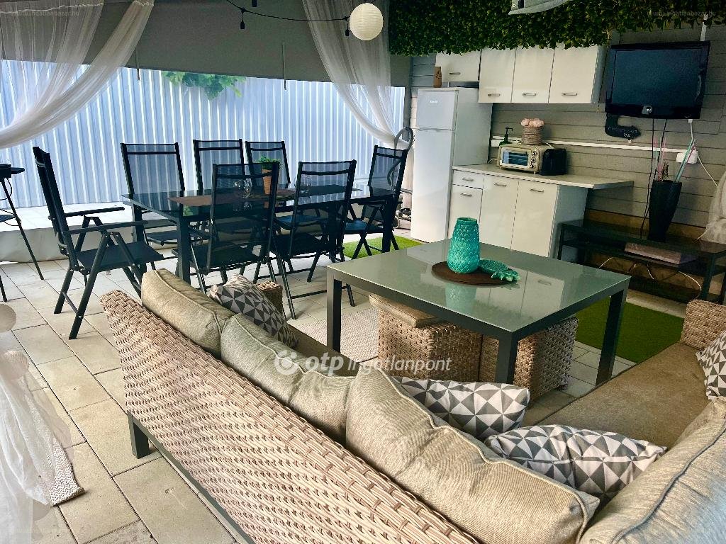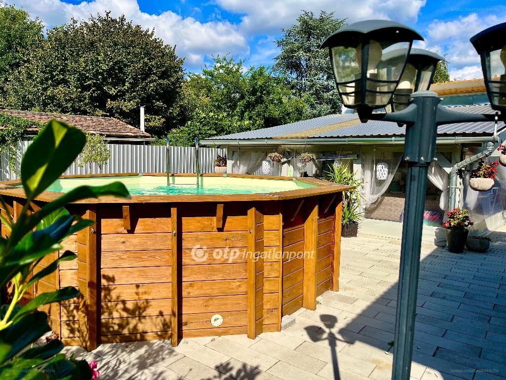 „Eladó Kiskunlacháza üdülőterületén a Duna-parttól 1 utcára levő 647 m2 telken egy elképesztő 50 m2-es szigetelt tégla ház zárt kocsibeállóval. Óriási hangulatos kertre nyílóterasszal, medencével, hatalmas kerttel, fúrt kúttal, öntözőrendszerrel, kis szerszámos tárolóval. A fűtés Nobo fjord fűtőpanelekkel klímával, illetve egy kandallóval megoldottak. Kamerarendszer illetve riasztóval egybekötött távfelügyelet van. Az alacsony rezsivel életvitelszerűen vagy csak nyári laknak is kiválóan alkalmas. […]”