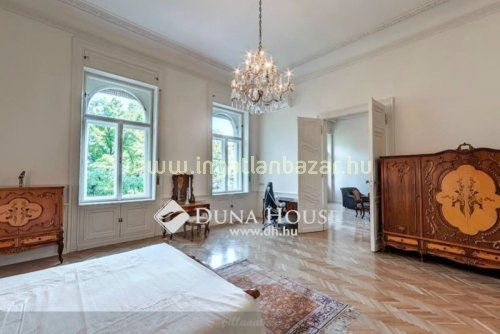 A századfordulón épült bérház 660 nm-es, teljes II. emelete (lift) eladó. Helyiségei: 18 szoba, 3-4 konyha, több fürdőszoba, több WC, erkély. Parketta és szőnyegpadló burkolatok, 5 szoba a Dunára néz. A terület egy részét 7 évvel ezelőtt felújították, korszerűsítették. A mellékutca felé néző terület felújításra szorul. A lakás, mely 5 lakás egybe nyitásából alakult ki, különböző fűtési rendszerrel van felszerelve.