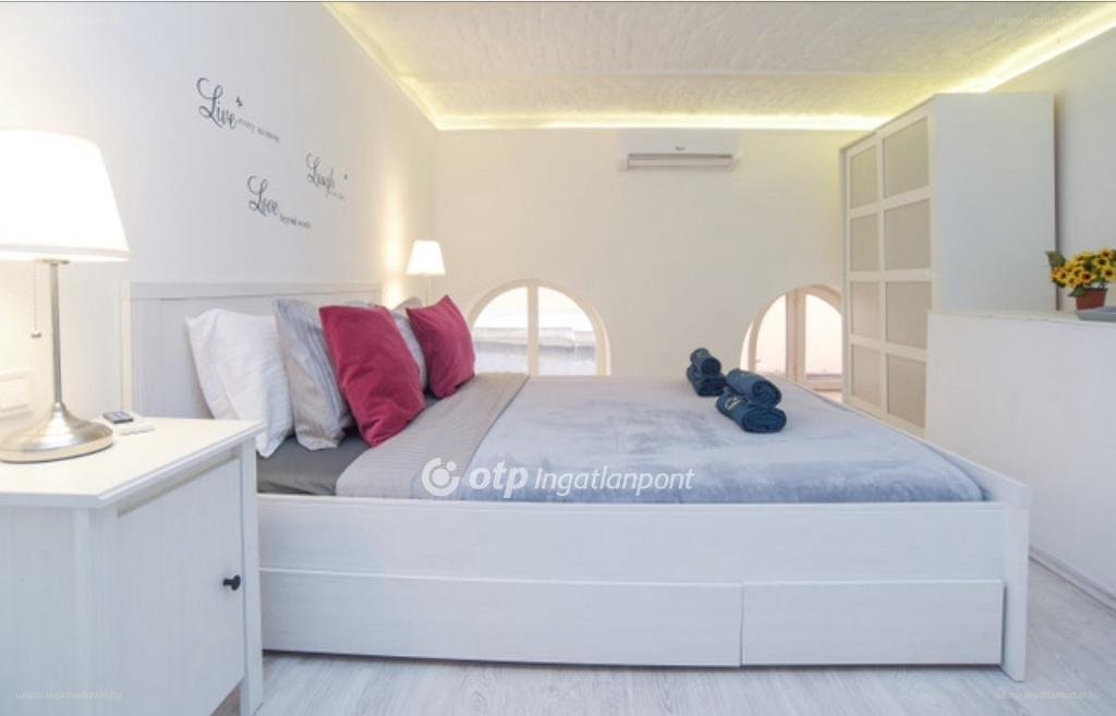 „LUXUS a tetőfokon. Bár a tulajdoni lap szerint a lakás hivatalosan csak 16 m2, de ez ezer éve volt. Azóta az új tulajdonos kihozott belőle egy valódi csodát: egy belső kétszintes lakást és egy terasz is tartozik a lakáshoz, ami nagyobb, mint a lakás maga és az olasz úrnak ügyvéd által írt megállapodása van a házzal, hogy csak ő használhatja. Ne a négyzetméter / forint árat nézzük ebben az esetben, mert ez tényleg egy különleges paraméterekkel rendelkező luxus lakás.”