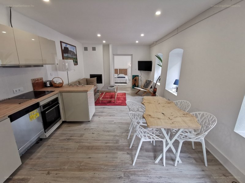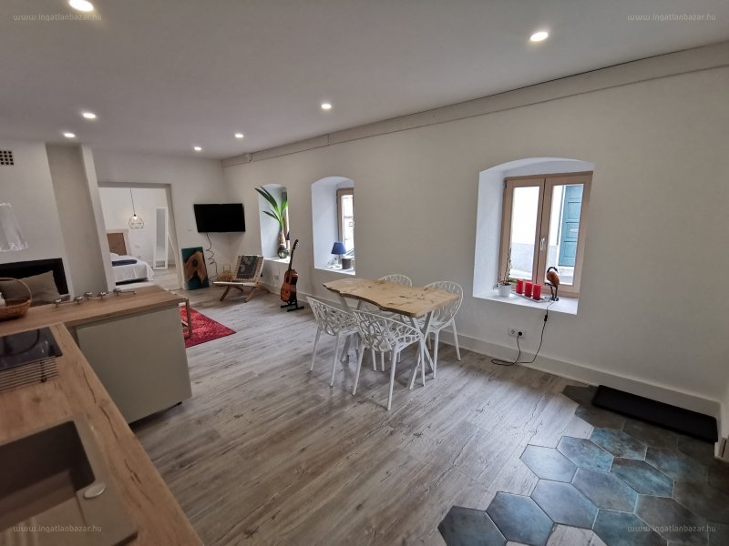 “Pécs-történelmi belvárosában ízlésesen felújított 65 m2-es ház eladó! A telek 95 m2 nagyságú. A pécsi várfal tövében lévő ingatlan teljes felújításon esett át! Az összes vezeték (víz,-szennyvíz, villamos) cseréje megtörtént. Melegét egy 12 kw-os, fatüzelésű kandalló és egy inverteres, hűtő-fűtő klíma adja! Amerikai konyha nappalijában egyedi tervezésű, gépesített konyhabútor lett behelyezve. Ebbe beépítésre került a tűzhely, főzőlap, mosogatógép, hűtő valamint páraelszívó is. Fürdőjében a burkolatok gondosan lettek kiválasztva!